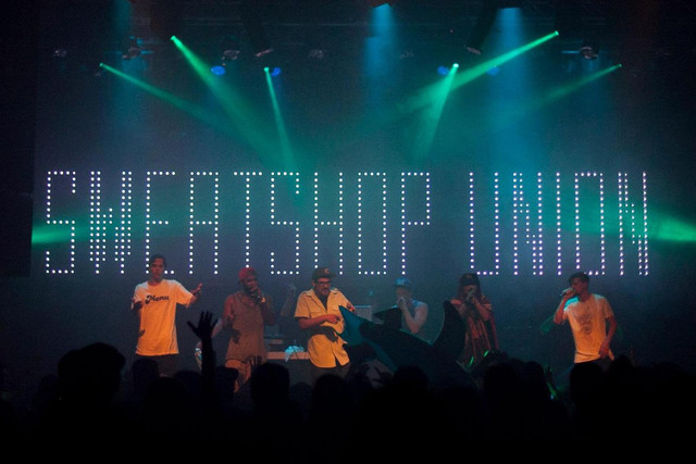 If we spend so much of our youth fighting for our rights, we don’t get a chance to party until we’re older. Canadian hip-hop heavyweights Sweatshop Union, one of the hardest working ensembles to ever emerge from British Columbia, have been making righteous, politically charged music for over a decade but on their newest album Infinite (summer 2013), they’re ready to really enjoy themselves. The 6-member crew took their time with this album, spending a year to gather sounds and lyrics, whereas previous records have been completed in mere months. It bridges the gap between conscious music and fun party jams, exploring heavy themes but it’s also built for kicking back and vibing. The group believes that the record’s strength lies in this dichotomy. Infinite (nominated 2014 WCMA) follows 2011’s Bill Murray EP, which won the Western Canadian Music Award for Hip-Hop Album of the Year, and raised their profile beyond their grassroots following, some time after pair of Juno nominations from their previous work together (Natural Progression & United We Fall | 2004 & 2006). The new LP contains a range of sounds, combining old-school hip-hop with futuristic, electro headbangers, not to mention some ballads and spoken word interludes. It accomplishes the tricky task of reflecting the outfit’s individual tastes, as they inform SSU’s collective vision. The group is prolific and moves quickly but as of this moment, Infinite stands as the most eclectic record in the Sweatshop Union catalogue. Listeners will find it tricky to categorize but it’s clear the collective had a lot of fun making this music and they hope it’s contagious. After all, despite its title, Infinite reflects a group of men who know that life is short and that they need to savor all the joyful moments that making music together provides. Discography * Sweatshop Union 2001 * Local 604 2002 * Natural Progression 2004 * United We Fall 2005 * Water Street 2008 * Bill Murray EP 2011 * Infinite 2013